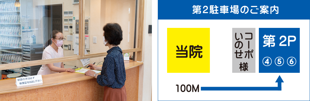 医院内に駐車場15台(身障者用含む)、少し離れましたところにも3台分のご用意がございます。